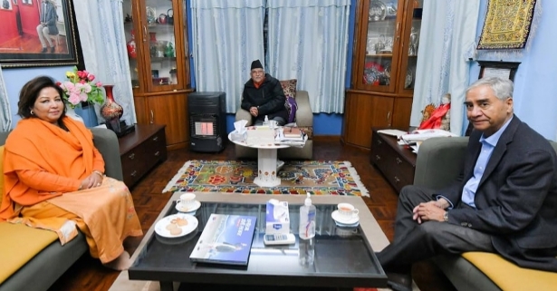 बालुवाटारमा शीर्ष नेताको बैठक, प्रधानमन्त्रीसँगै देउवा र ओली सहभागी