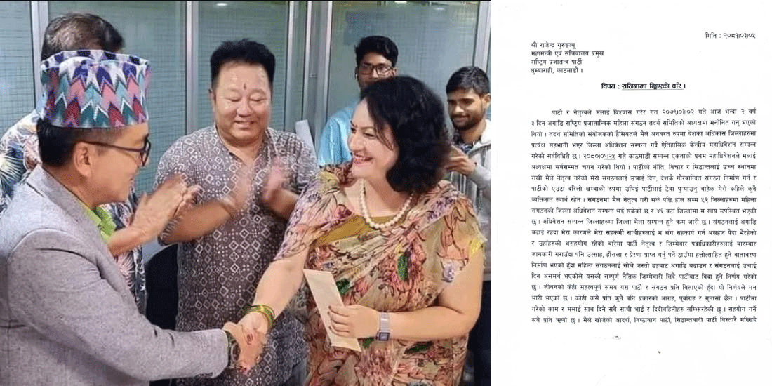 राप्रपा महिला संगठन अध्यक्ष अञ्जनाले दिइन् राजीनामा, सपरिवार राप्रपा छोडेको घोषणा