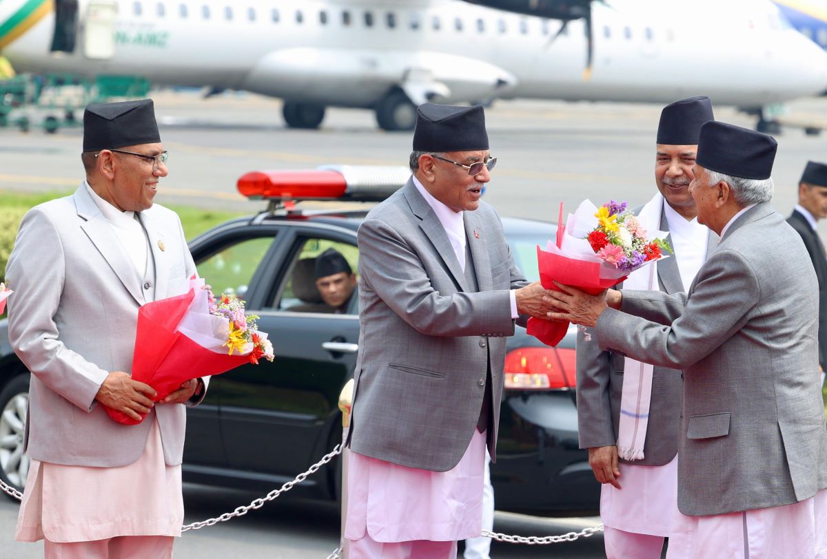 बालुवाटारमा शीर्ष नेताको बैठक, प्रधानमन्त्रीसँगै देउवा र ओली सहभागी
