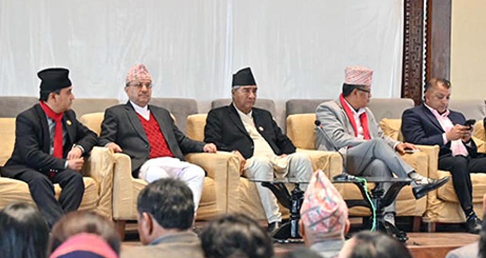 बालुवाटारमा शीर्ष नेताको बैठक, प्रधानमन्त्रीसँगै देउवा र ओली सहभागी
