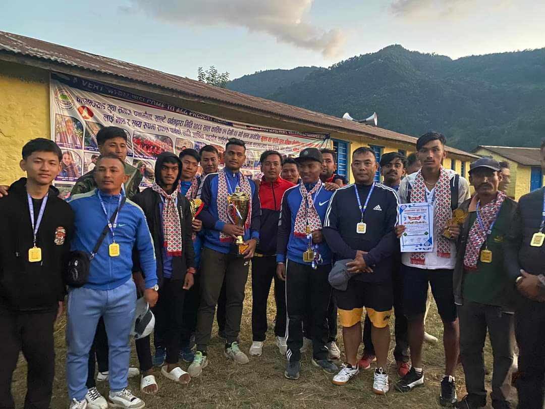 चारभन्ज्याङ युवा समाजले आयोजना गरेको भलिबल प्रतियोगिताको उपाधी सान्तीचौर युबा क्लब लाइ