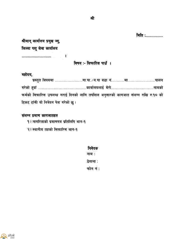 जिल्ला पशु सेवा कार्यालय को ‘सिफारिस पाउँ’ नमुना
