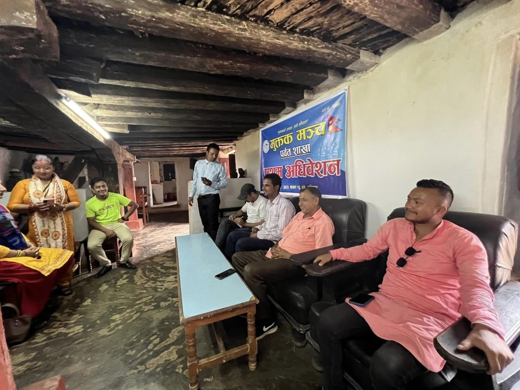 पर्वत : मुक्तक मञ्च पर्वत शाखाको प्रथम अधिवेशन आज कुस्माको शताब्दी घारमा सम्पन्न भएको छ । २०७७ साल देखी पर्वतमा स्थापना भएर निरन्तर साहित्य र मुक्तकको उनन्नयनमा सक्रिय मुक्तक मञ्चले आज आम वृहत भेला गरी अधिवेशन सम्पन्न गरेको हो । मञ्चको अध्यक्षमा ध्रुव केसी निर्वाचित भएका छन् । जसको प्रथम उपाध्यक्षमा ठाकुर रसाईली, द्धितिय उपाध्यक्षमा दिपसागर पौडेल, महिला उपाध्यक्षमा गीता अधिकारी, सचिवमा लक्ष्मण विश्वकर्मा, सह सचिवमा सन्देश पौडेल, कोषाध्यक्षमा करिश्मा क्षेत्री चयन भएका छन् ।