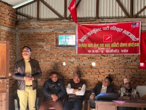 कार्यक्रममा बोल्दै नेकपा एकिकृत समाजवादीका केन्द्रीय सदस्य तथा पर्वत जिल्ला कमिटिका अध्यक्ष मोती प्रसाद पौडेलले कम्युनिस्ट आन्दोलनको लामो संघर्षबाट प्राप्त भएको उपलब्धीलाई रक्षा गर्नका लागि र निरंकुश चरित्रलाई चुनौती दिन नयाँ पार्टीको जन्म भएको बताउँदै सबै कम्यूनिष्ट श्रमजीबिहरु नेकपा एकिकृत समाजवादीमा गोलबन्द हुन आग्रह गरेका थिए ।