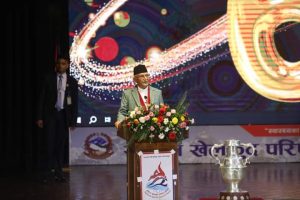 कार्यक्रम लाई सम्बोधन गर्दै प्रधानमन्त्री ओलिले नेपाल खेदकुदमा नयाँ युगमा प्रवेश गरेको बताए । उनले अन्तरास्ट्रिय स्तरमा नेपाल भर्खरै प्राप्त गरेको पदक सबै नेपालीको लागि गर्वको बिषय भएको स्मरण गराए ।