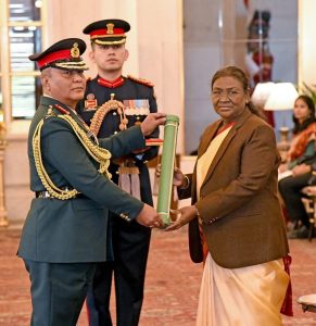 भारतीय राष्ट्रपति द्रोपदी मुर्मुले भारतीय स्थल सेनाको मानार्थ महारथी दर्जाको दर्ज्यानी चिन्ह प्रधानसेनापति अशोकराज सिग्देल लाई प्रदान गरेकी छिन् ।