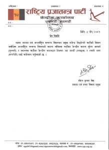 राष्ट्रिय प्रजातन्त्र पार्टी (राप्रपा) का अध्यक्ष एवं अन्तर्राष्ट्रिय सम्वन्ध विभागका प्रमुख राजेन्द्र लिङ्देनले पार्टीको विधान बमोजिम अन्तर्राष्ट्रिय सम्वन्ध विभागको सदस्य सचिवमा पार्टीका केन्द्रीय सदस्य सुरेश आचार्य (सुनसरी) लाई नियुक्त गरेका छन् ।