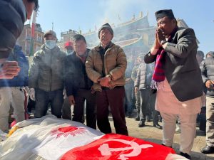स्वर्गिय शेर्पालाई मंगलबार नेकपा एमालेका केन्द्रिय सदस्य एवं रक्षा मन्त्री मानवीर राईले पार्टीको झण्डा ओढाई अन्तिम श्रद्धाञ्जली अर्पण गरेका छन् ।